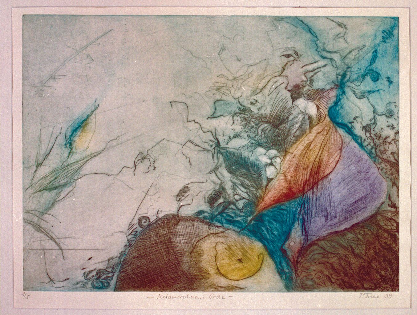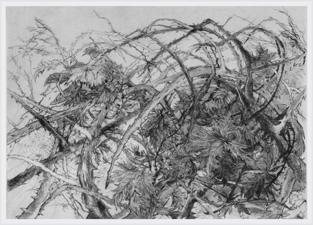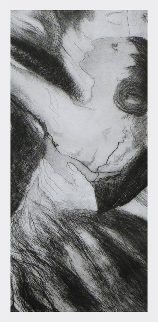 Bei der Kaltnadelradierung wird die Zeichnung unter Kraftaufwand mit einer Stahlnadel in eine Zink- oder Kupferplatte eingeritzt. Dabei bewirkt ein stärkerer Druck der Nadel eine stärkere Linie. Sehr gern benutzt Petra Freese anstelle